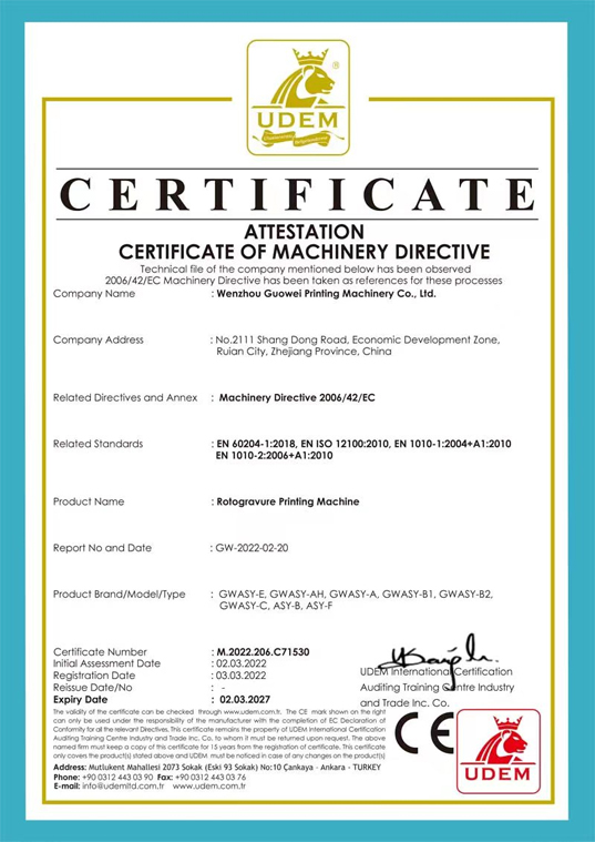 27年的發(fā)展和積淀,鍛造了一支創(chuàng)新能力強(qiáng)、技術(shù)素質(zhì)高的專業(yè)研發(fā)隊(duì)伍。多種產(chǎn)品通過了凹版印刷機(jī)和分切機(jī)CE認(rèn)證(證書號(hào):M.2022.206.C71530和M.2022.206.C71529)